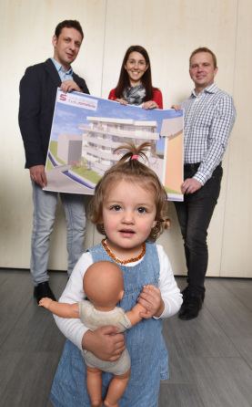 Derzeit noch außergewöhnlich im mehrgeschossigen Wohnbau ist die Verwendung eines Ziegels mit integrierter Dämmung - rein mineralische Füllung mit Mineralwollflocken.